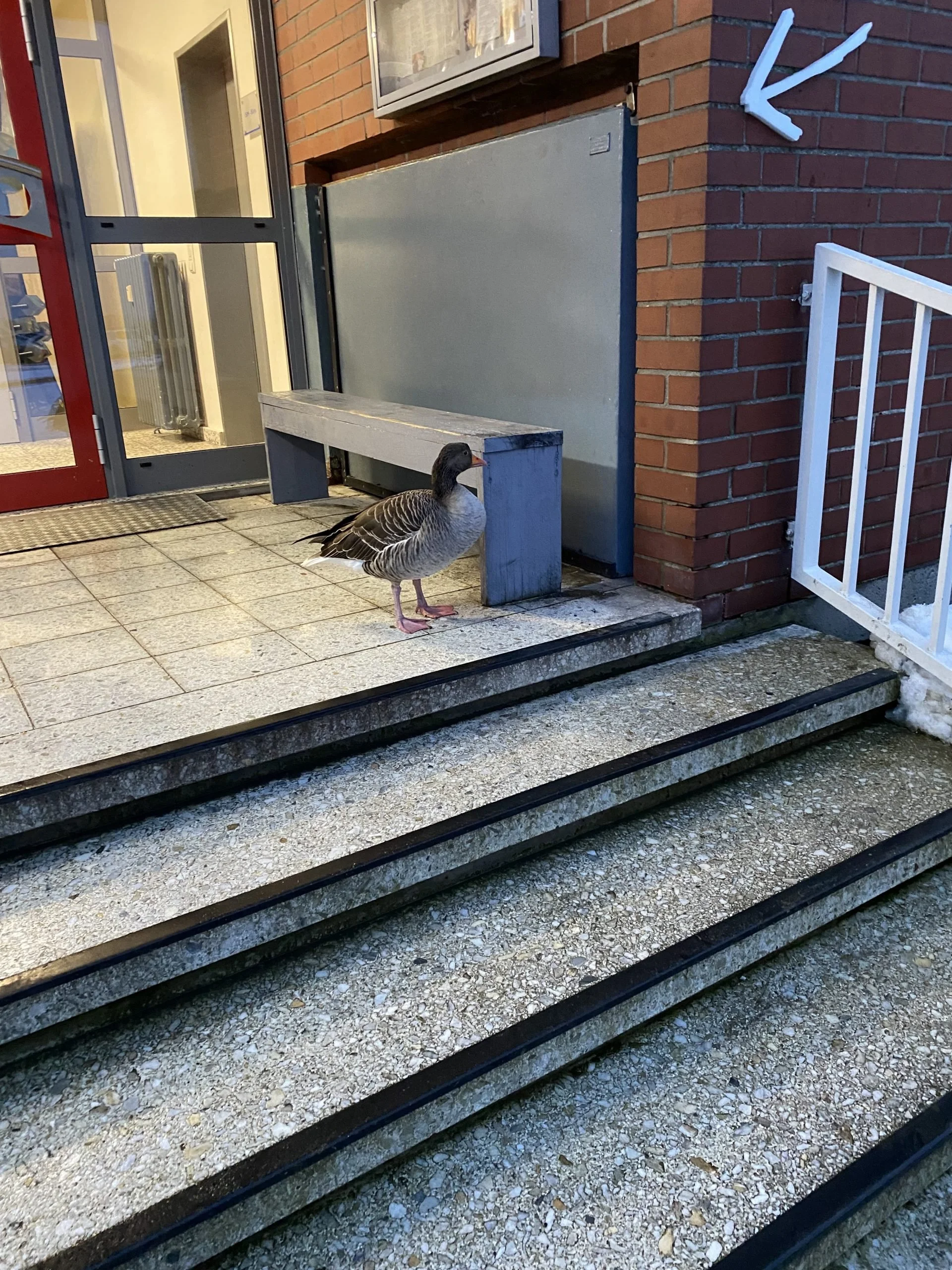 Vor dem Eingang zur Gepäckaufnahme treffe ich auf die einheimische Tierwelt: