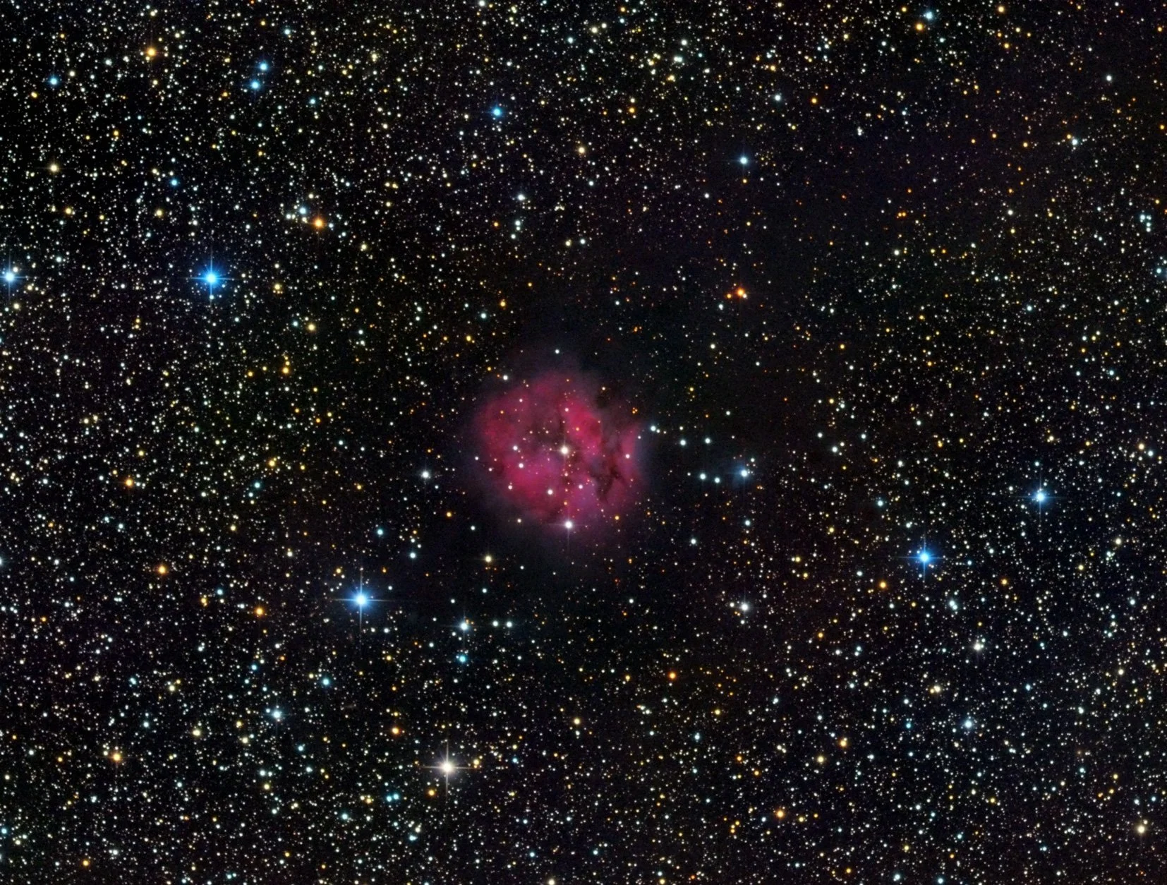 Mehr zu dieser Aufnahme Je LRGB-Kanal wurden am 8. August 2022 vier Aufnahmen á 300 Sekunden erstellt. Dies bedeutet eine Gesamtbelichtungszeit von 80 Minuten. Die Bearbeitung erfolgte „Quick & Dirty“ in PixInsight. Nordöstlich des Nebels ist die Balkenspiralgalaxie IC 1296 erkennbar. Gemäß Wikipedia soll sie 238 Millionen Lichtjahre von uns entfernt sein (Durchmesser 75.000 Lichtjahre). …