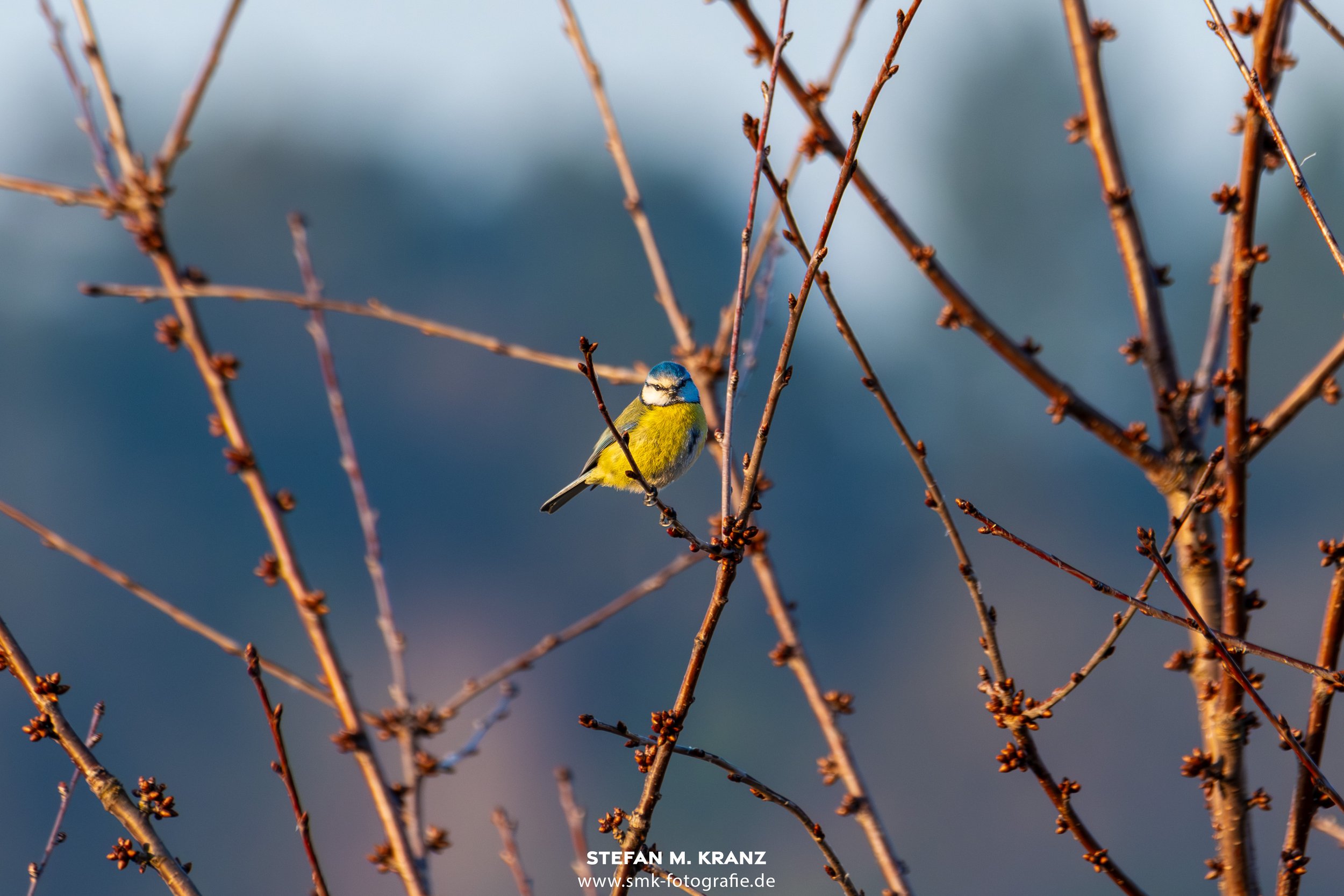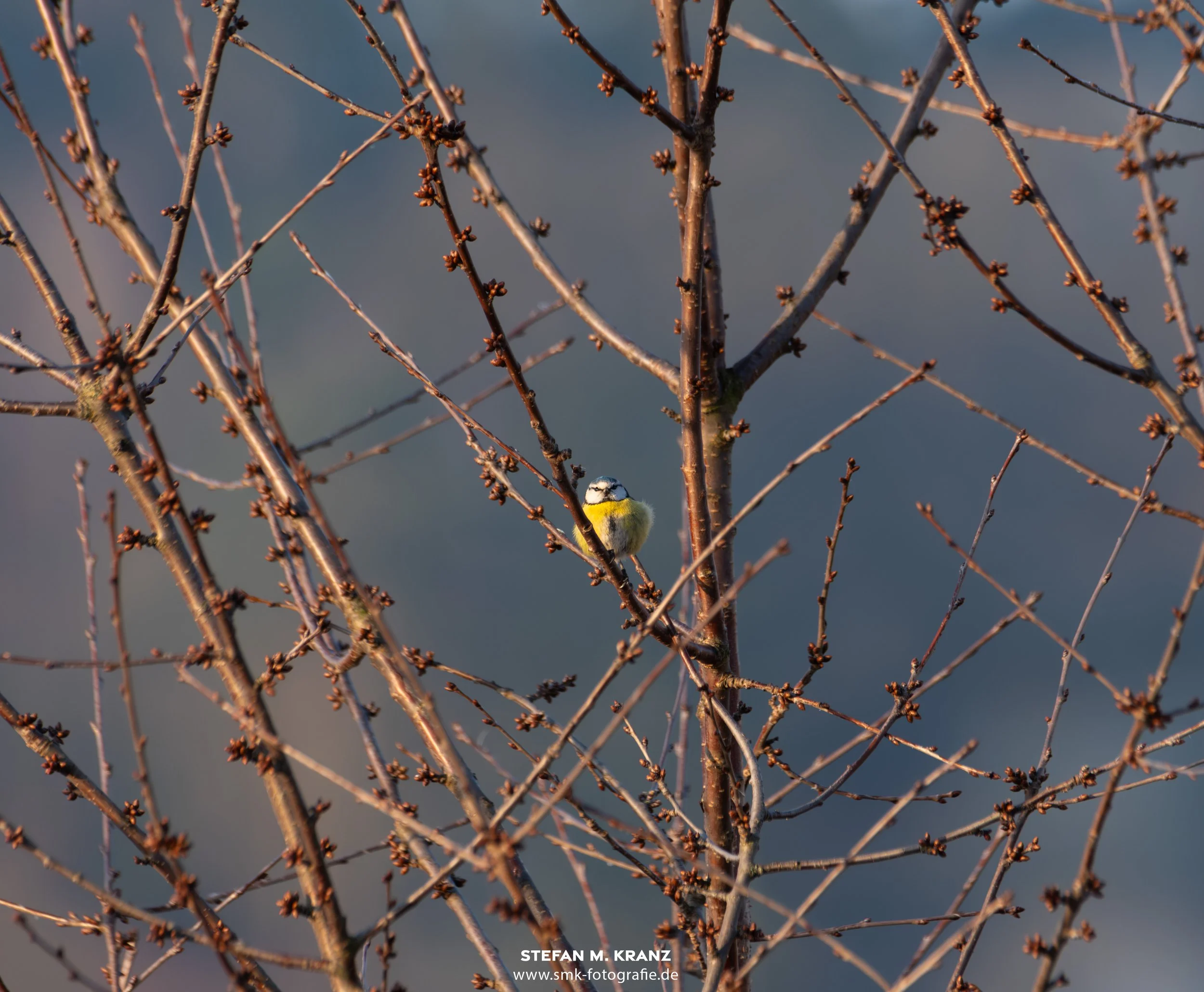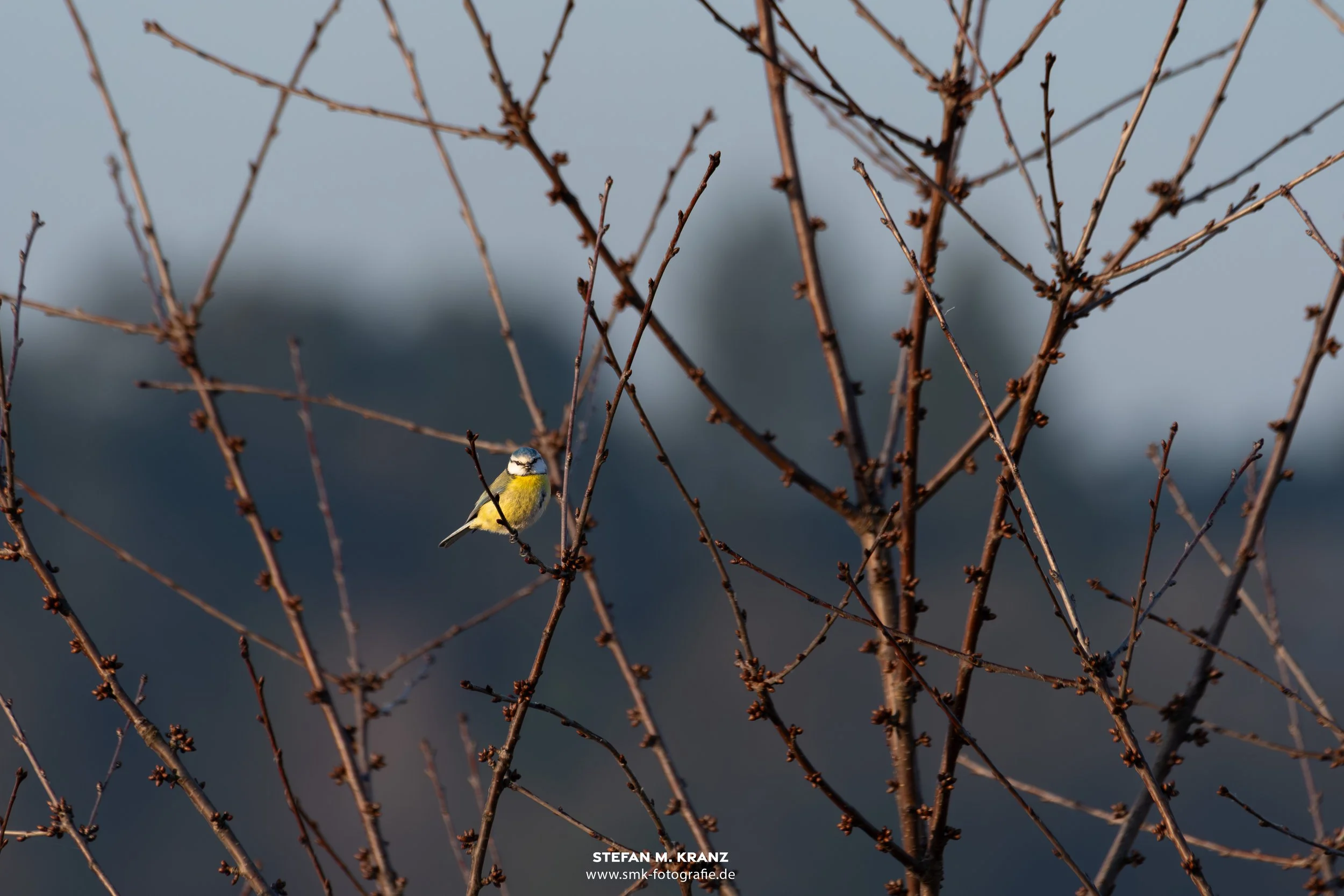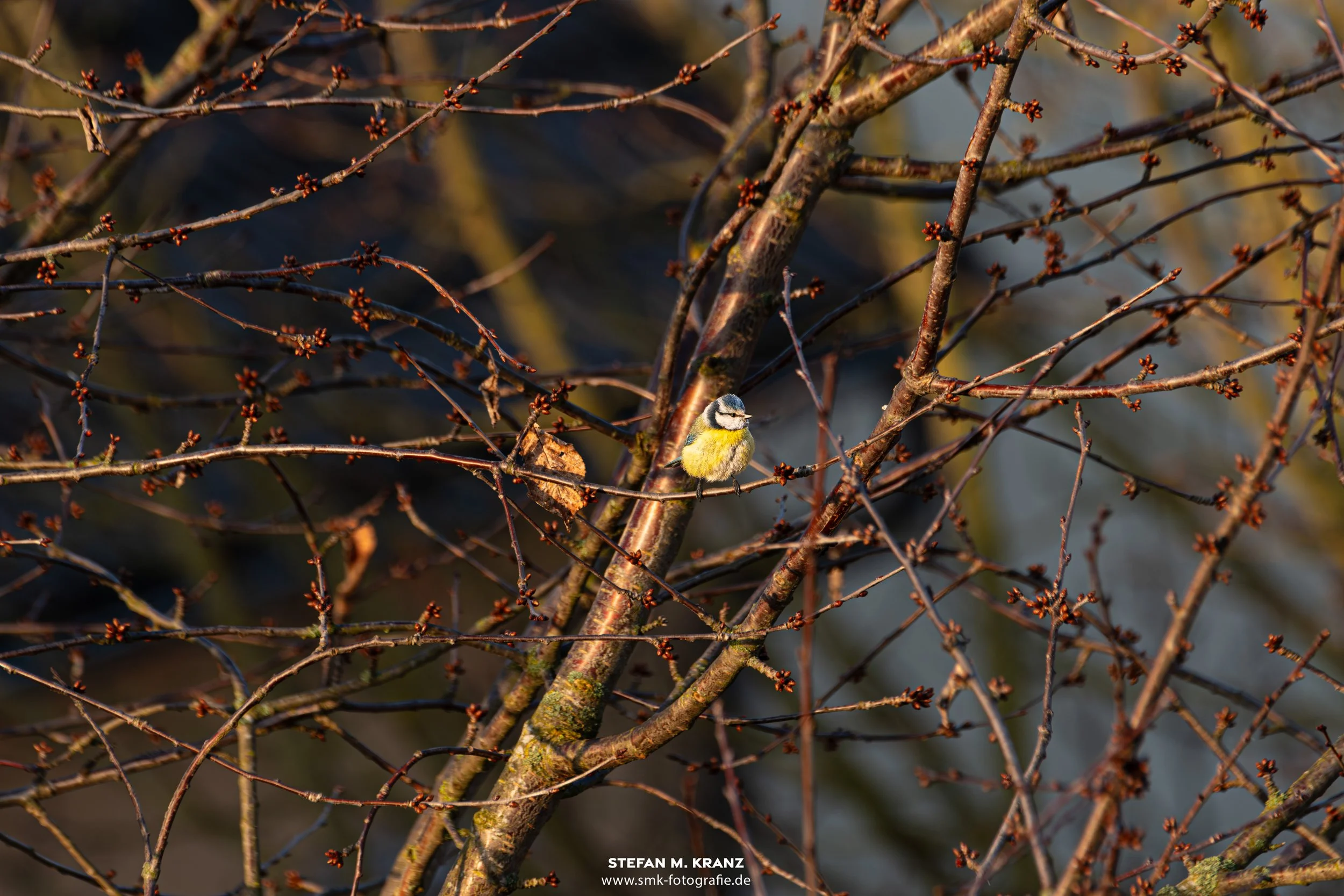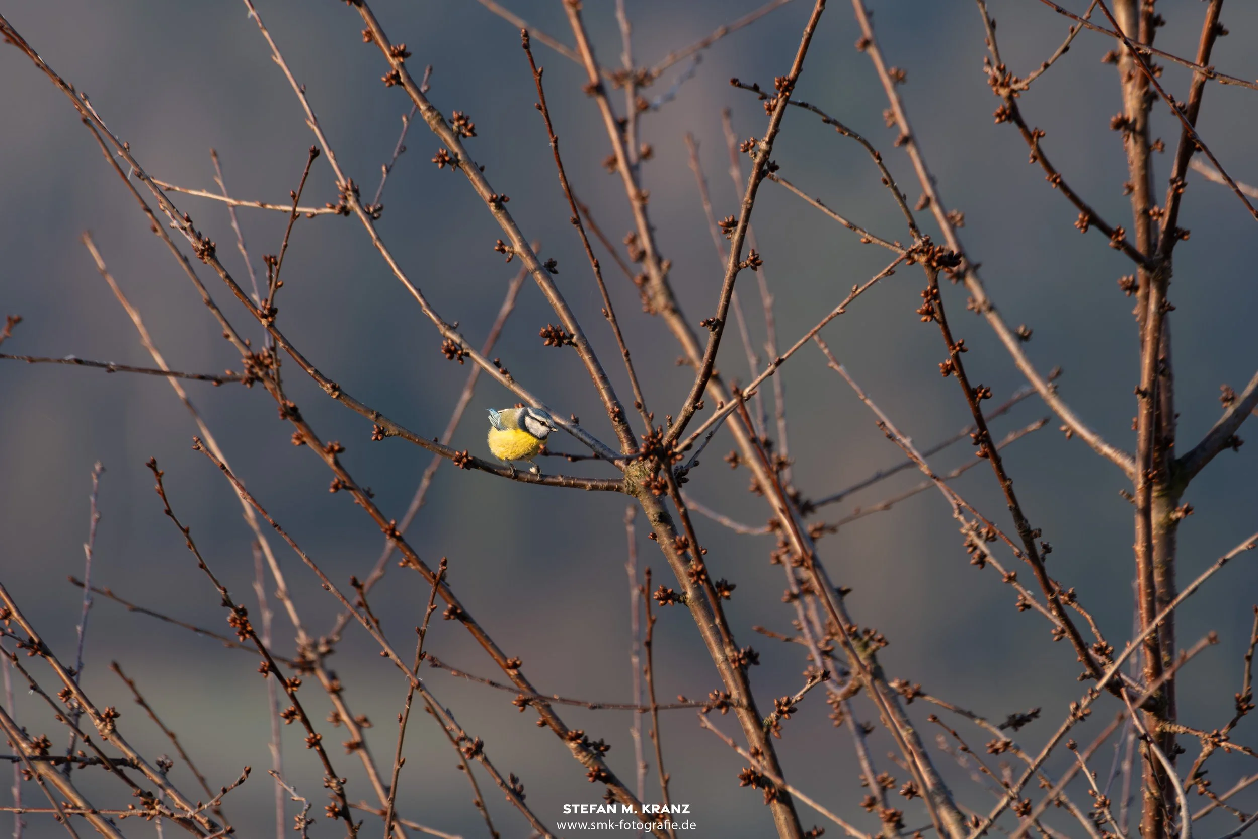 Blaumeise mit dem Nikon 200-500 mm f/5,6 bei 500 mm und der Nikon D500
