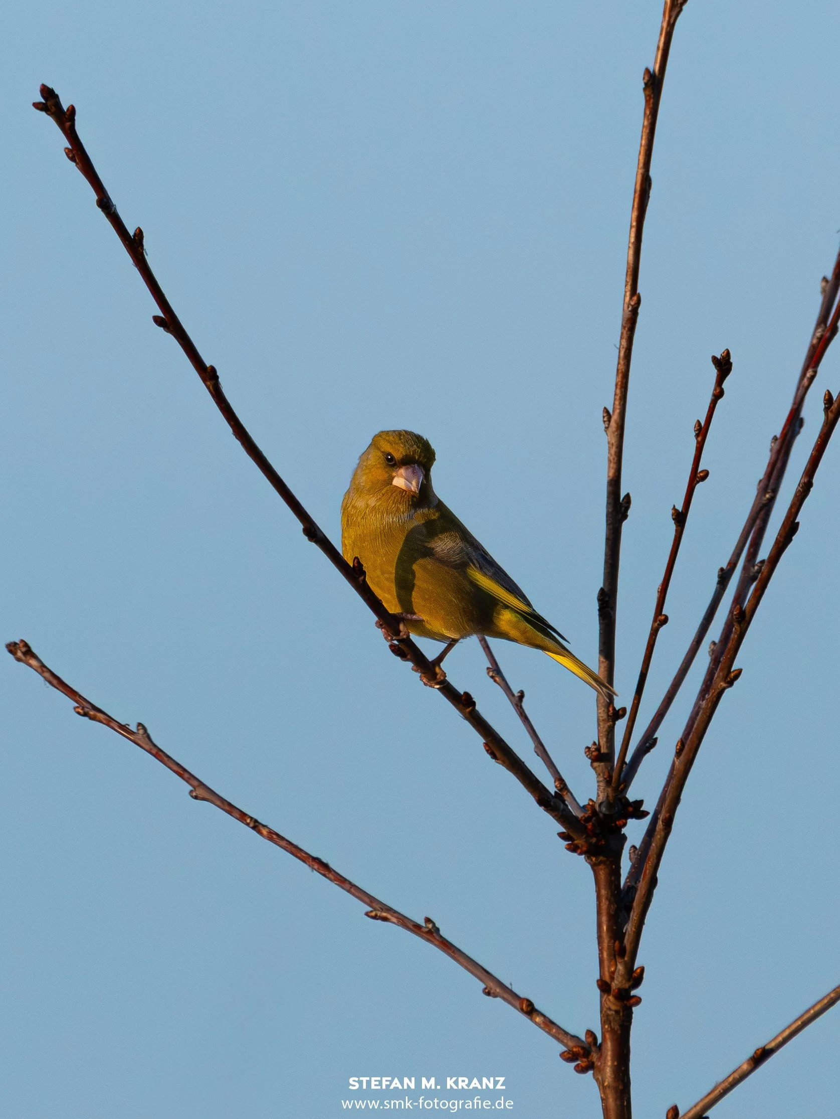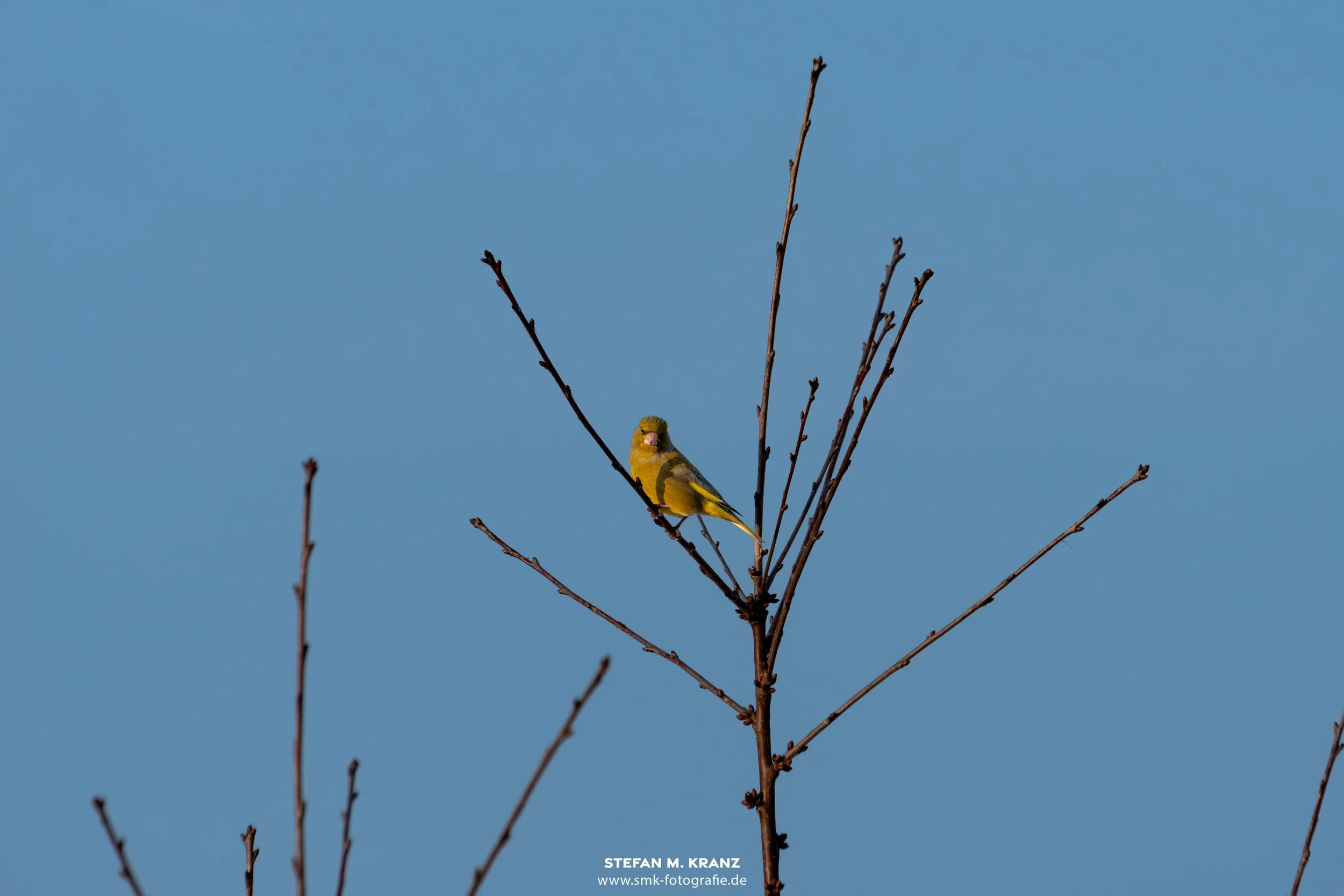 Aufgenommen am 08.03.2026 vom heimischen Balkon mit dem Nikon 200-500 mm f/5,6 bei 500 mm und der Nikon D500. Es handelt sich laut KI um einen Grünfink (ich selbst habe da keine Ahnung), wahrscheinlich sogar ein Männchen.